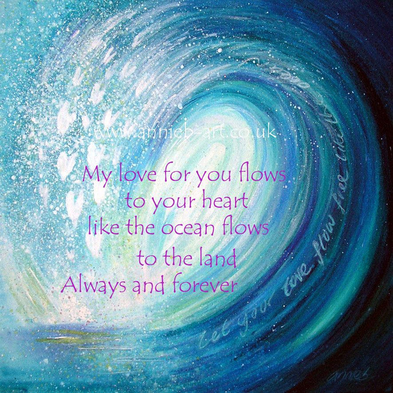 QUOTE ART. Beautiful blue ocean wave print with words of love
